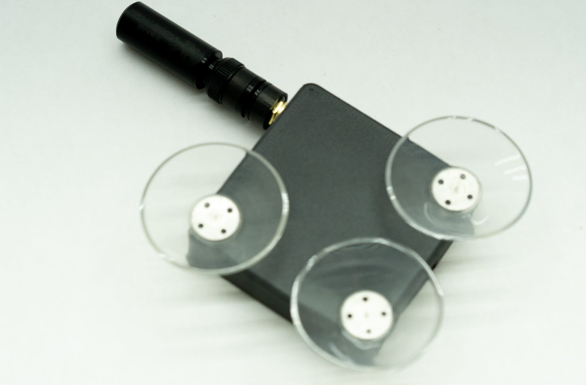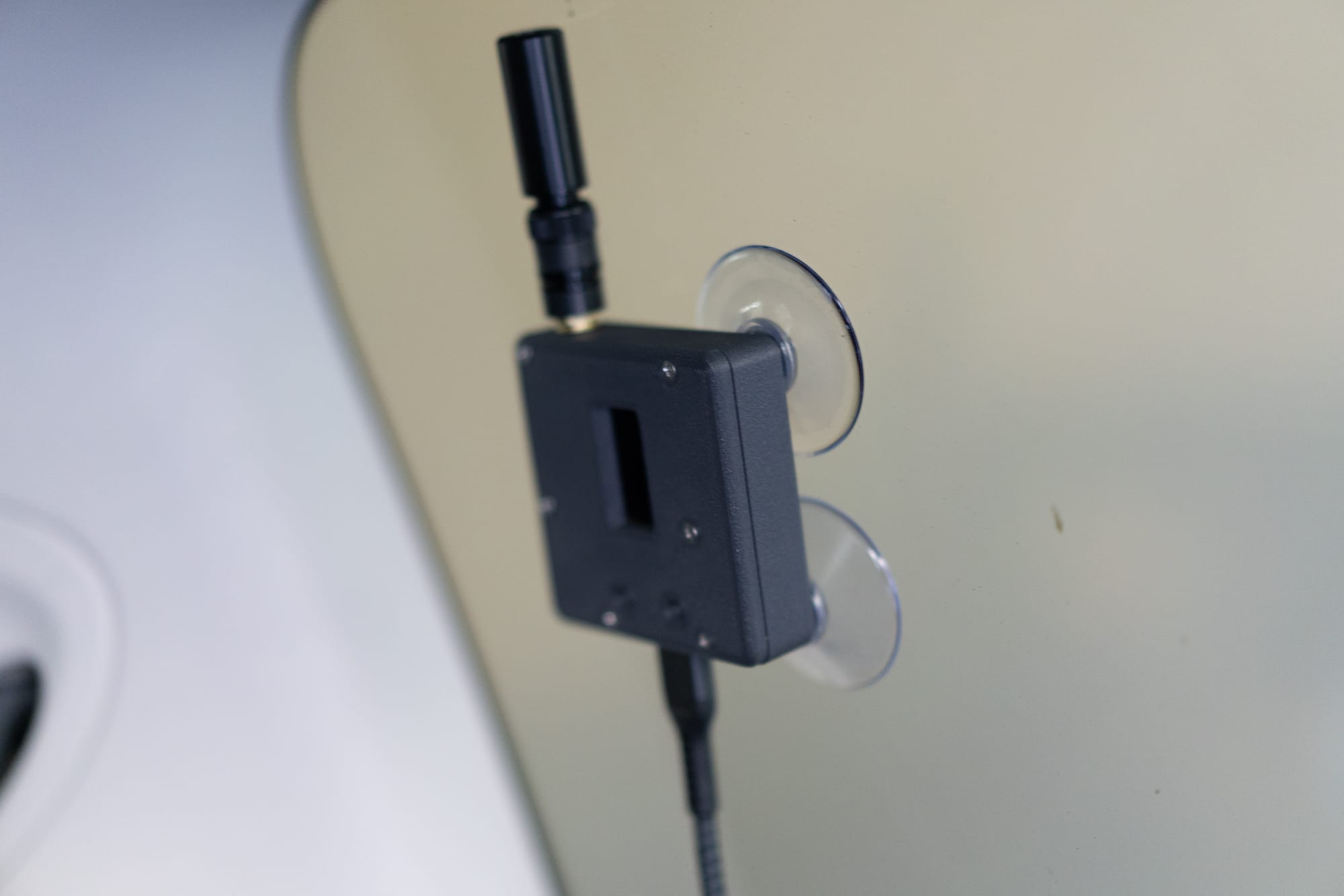 This design also doesn't need supports, you can even print the lid inverted to get the smooth finish from the build plate. The build is still pretty simple, with only a top and bottom. It still retains the general interior dimensions as the larger build, and the holes are the perfect size to hand-screw the M5 suction cups on. The antenna cable needs the space where the fourth suction cup might go, but the 3 seems fine to prevent wobble or rotation.