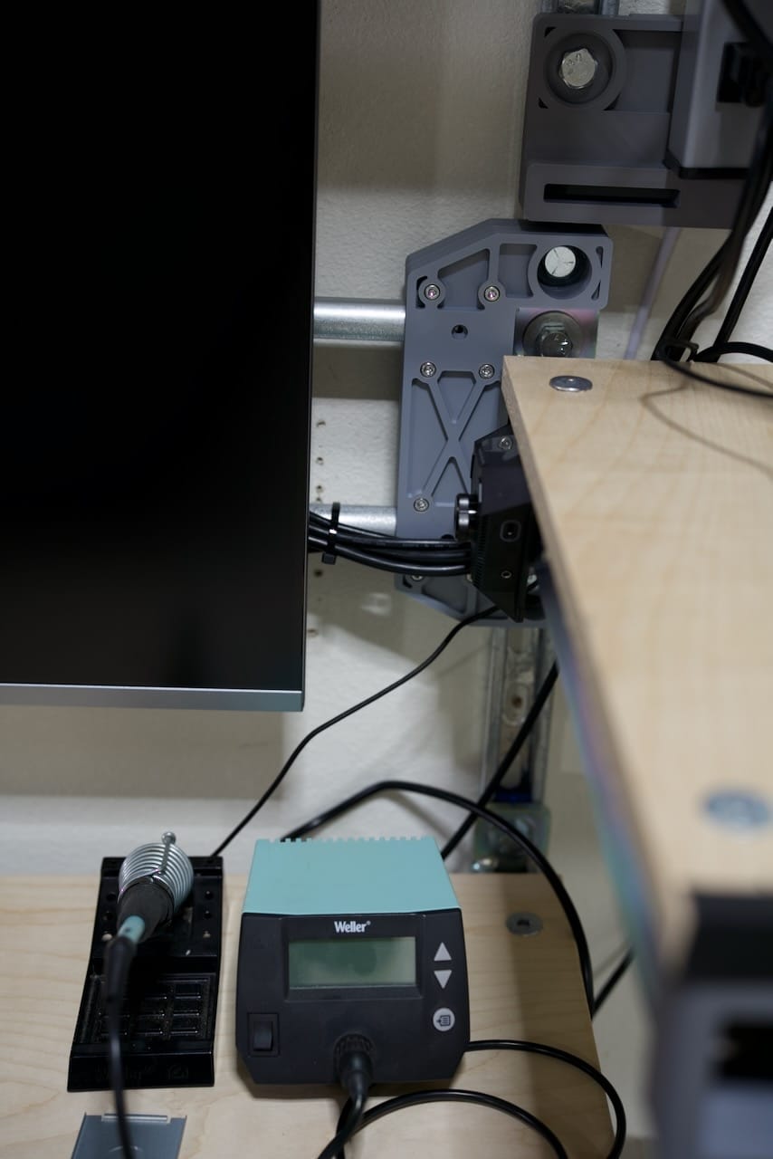 I am currently thinking of how I can integrate some rolling work areas for a laser engraver and a 3D printer to the right hand side of the desk. This will help keep things modular for me, especially as I want to wheel the laser out closer to the garage door for use and ventilation.