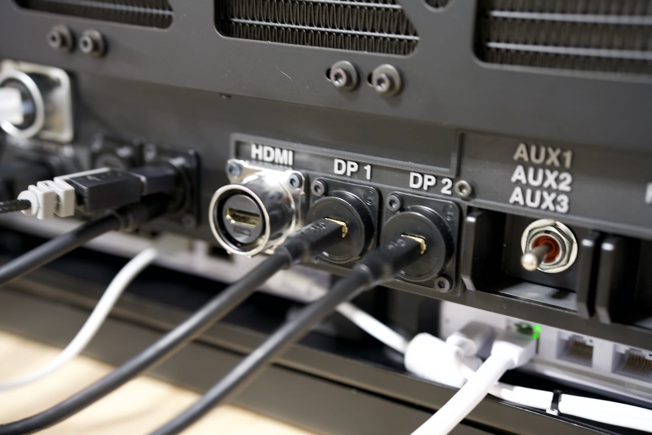 Display connections are modular, but I am relying on DisplayPort connections for two monitors currently, although the HDMI port works fine too. Just as on the graphics card itself, the display connections can change without needing to alter anything internally. I don't plan on doing dual HDMI, but if I did I'd need to drop one of the DisplayPort connectors.