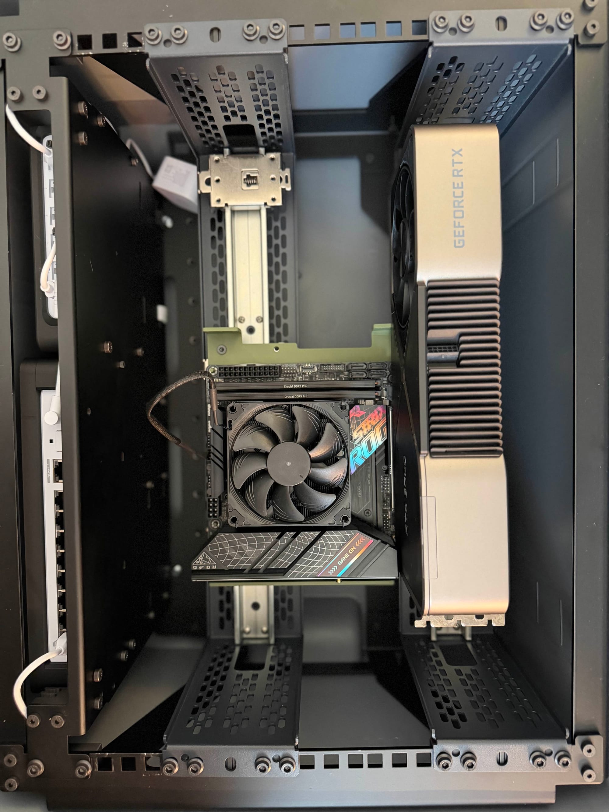 Without putting it on a scale, it's easy to say the included Asus ROG RTX 5080 is over half the weight of the components. This created several challenges for this build.