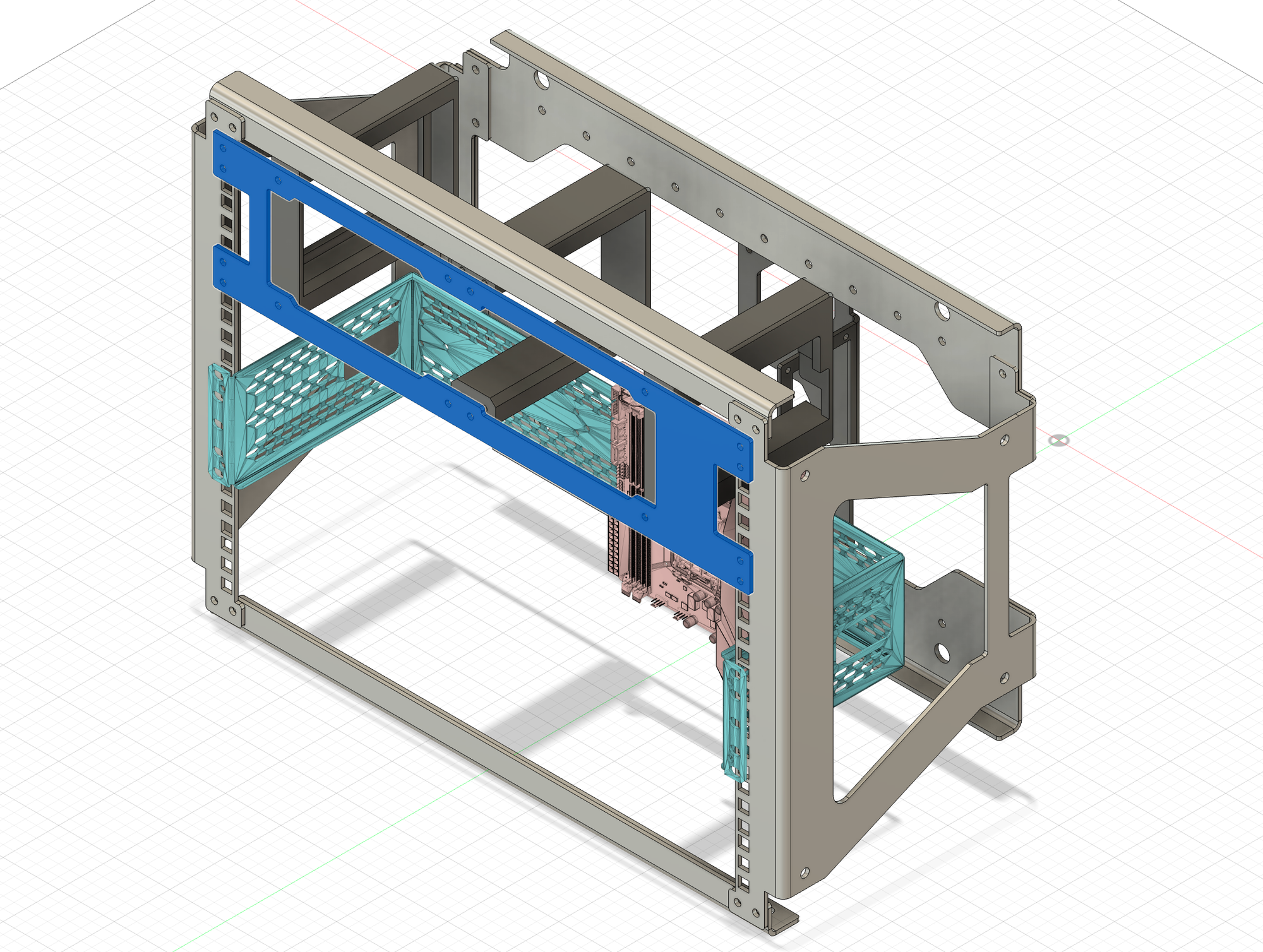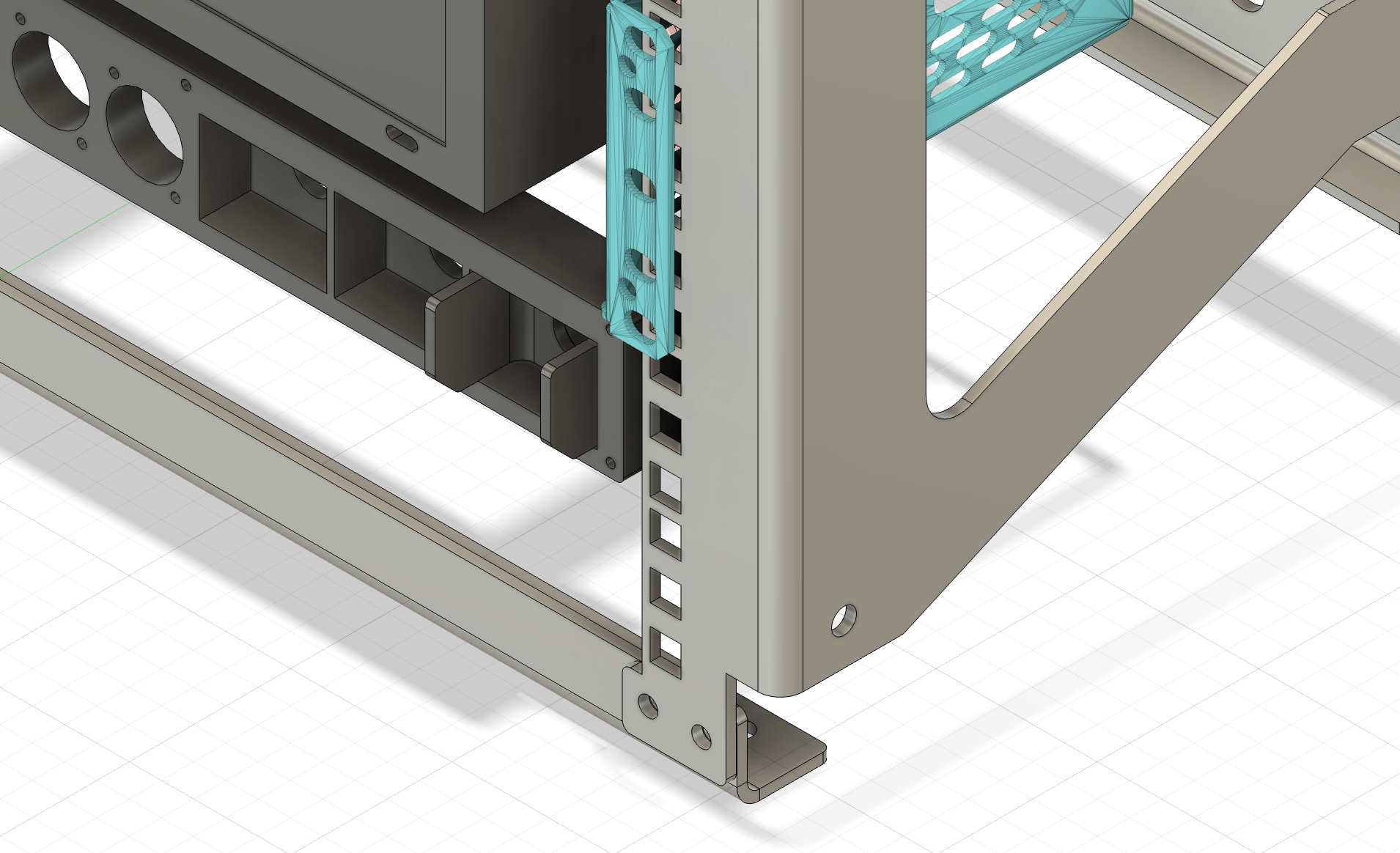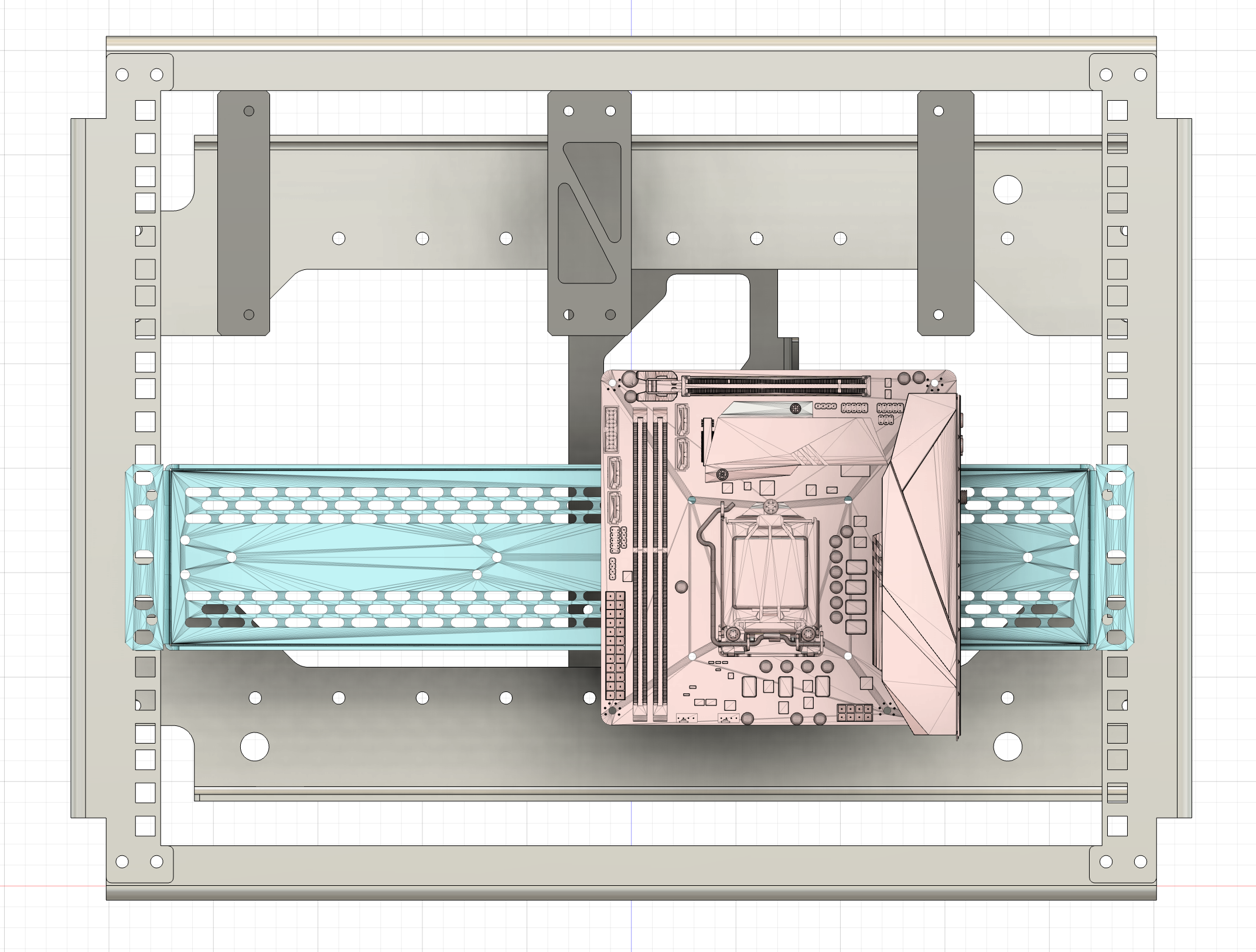 The DIN rail is traditionally used for PLC and other industrial equipment, and was a key "discovery" for this build. Adding the DIN rail to 19" rack adapter showed me how I could mount the motherboard, which up until then looked like a very complex and expensive part to prototype. Knowing what I know now though, I would probably just make my own rack adapter and include all the mounts I need for things like the motherboard, PSU, etc. There is "room" for more optimization and reduction in part count around this, especially if I plan to use it only for this PC, but again with this system being modular, I can redesign as much of this build for whatever I may change my mind on later.