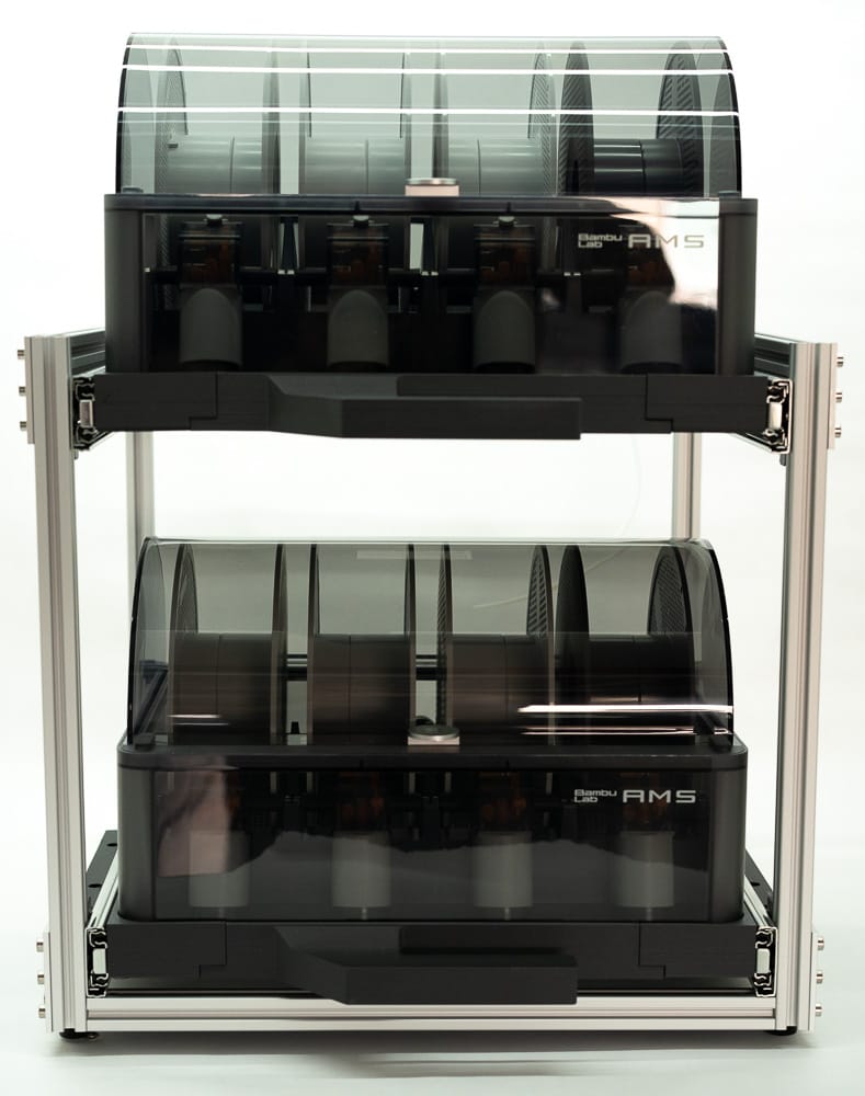 Anyway, I am adding a second AMS to each printer and didn't like the shelf options out there, specifically because my setup needs to fit under a cabinet. There are many custom plywood options too- and if cost is your main concern, I have to admit wood is going to be a better option. Hopefully my poor reasoning makes for a fun read!