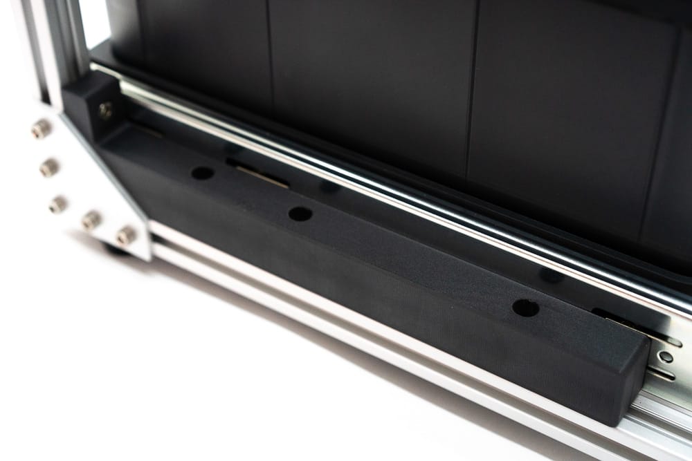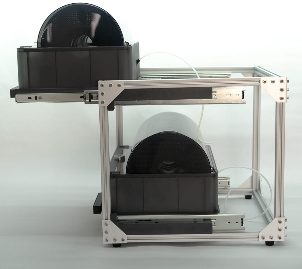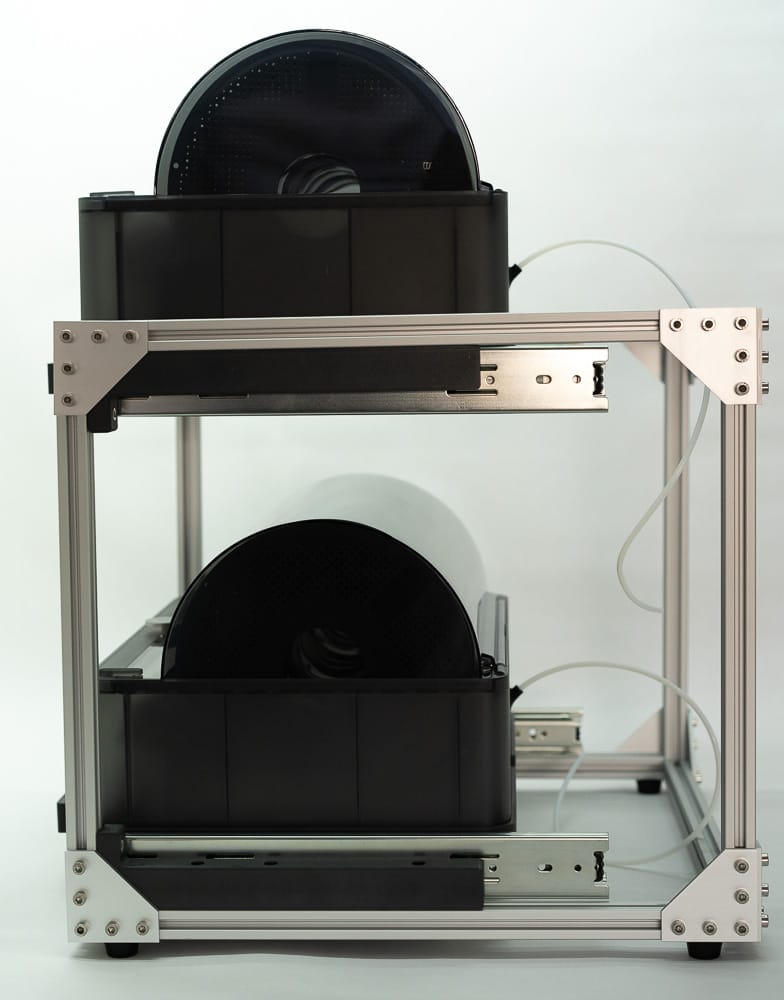 I wanted my AMS units to slide out on drawers, and it should be noted now: THIS BUILD MUST BE ANCHORED TO THE COUNTER OR WALL- EVEN FULLY LOADED, EITHER TRAY EXTENDS ENOUGH TO TIP! TIPPING DRAWERS HURT LOTS OF KIDS EACH YEAR, SO SECURE YOUR SETUP!